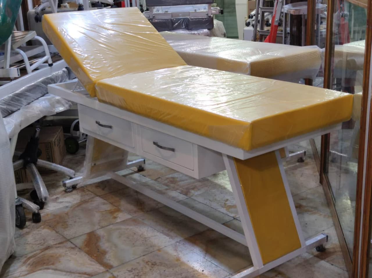 تخت معاینه پایه کج سر تاشو فوم ۱۰ سانتی متر با دو کشو